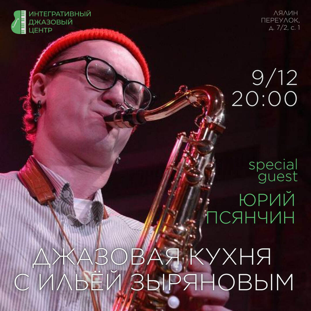 9 декабря вместе с «шеф-поваром» Ильей Зыряновым особые джазовые блюда будет готовить специальный гость - саксофонист Юрий Псянчин.
