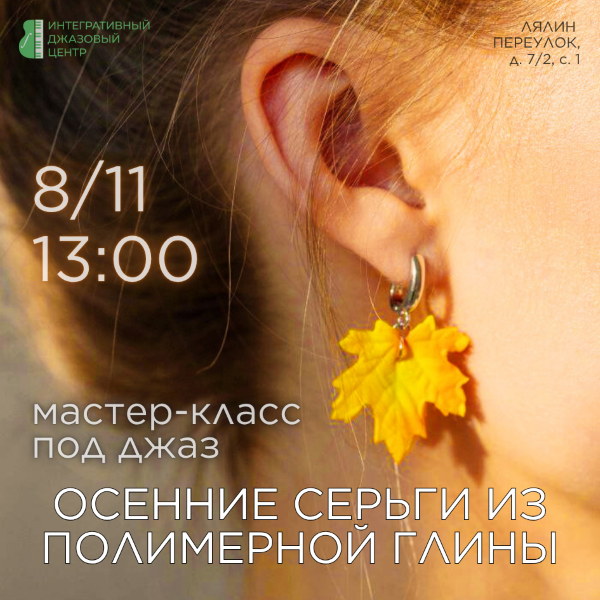 Вы познакомитесь с необычным материалом - запекаемой полимерной глиной, погрузитесь в атмосферу творчества и своими руками создадите украшение (серьги или, по желанию, брелок/подвеску). Творческий процесс будет сопровождаться прослушиванием известных джазовых композиций!