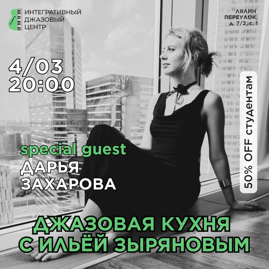 4 марта вместе с «шеф-поваром» Ильёй Зыряновым готовить особые джазовые блюда в режиме реального времени будет вокалистка Дарья Захарова.