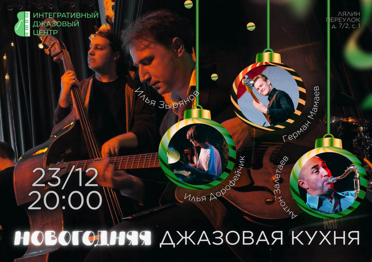 Шеф-повар гитарист Илья Зырянов поделится рецептами джазового оливье, музыканты приготовят новогодние и рождественские композиции в режиме реального времени, а вы почувствуете приближение праздника.